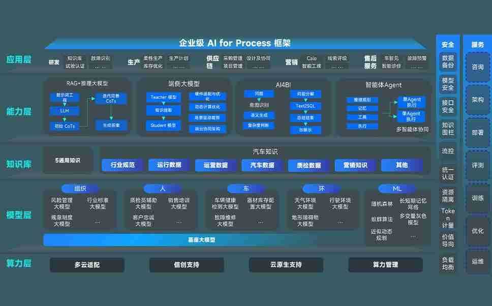 谈球吧问学智车解决方案是一套基于AI技术的汽车行业智能化系统,,覆盖从底层算力到顶层AI应用的全栈方案。。方案由算力层、、、、模型层和应用层组成:算力层,,,,方案支持多种一体机配置,,,具备云端灵活部署、、、多云适配以及动态优化计算资源的能力;模型层,,谈球吧问学平台版提供了企业级AI应用一站式构建与管理平台,,支持基于后训练强化技术的汽车企业专属模型的训练、、、评测和运营;应用层,,,谈球吧问学DeepSeek版提供包括超级员工、、、、智能招采、、智能营销、、、、智能客服、、AI for BI等一系列解决方案,,,,可助力汽车行业实现数字化转型,,,,让管理更智能、、、响应更敏捷。。。。