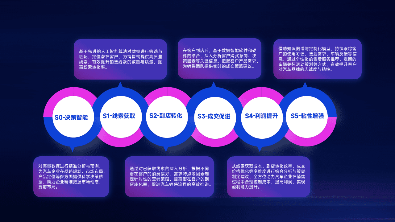 通过拓宽潜在客户来源、、优化线索分配并提高到店转化率,,以增强销售效率。。。同时,,利用线索数据不断优化分析模型,,,,有效提升转化率,,,扩大营销影响力。。